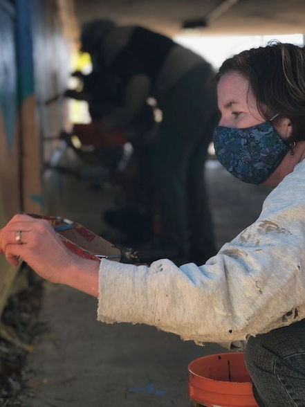 An on-site participatory art is a collaborative art project created at a specific location, where neighbours actively participate in the design and painting process, resulting in a mural that reflects back their shared values, stories, and aspirations.